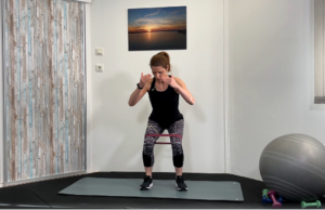 A kis gumikötelet a térd fölé vagy a bokához kell helyezni, ezzel fokozva a lábizmok erősítését.